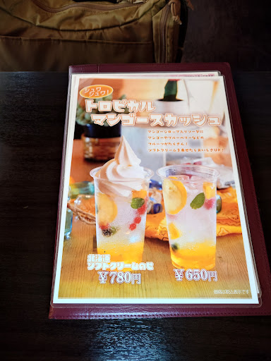 オススメの時間は14~18時頃。カフェですが、お茶の時間がそこそこ空いてます。ブルーシールアイスもあるし、シフォンケーキなどもあります。