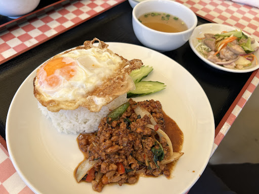 Thai food in this part of Yokohama where there are not too many choices this is barely 4 star, but there is not an option for 3.5 stars. Food is good enough to come back again. Now has been 2 times eating here. Staff is a little strange. On a hot day the waitress will take your cold beer from the refrigerator, open it and set it on the kitchen counter for about 5 minutes while she is talking to the other workers or just wandering around. This I have never witnessed before, but found it to be interesting behavior. I am curious if the refrigerator makes the beers too cold or perhaps frozen and she is just being helpful to thaw it….? Any ideas? Small and cozy space with cute decorations or Thai miniature figures and food toys. They have a small outdoor seating section with 2 tables. I had ga proa with egg and rice. Taste was acceptable. If you live in the area it is a good option and perhaps Uber eats is a good option to avoid the perplexing behavior pf...
