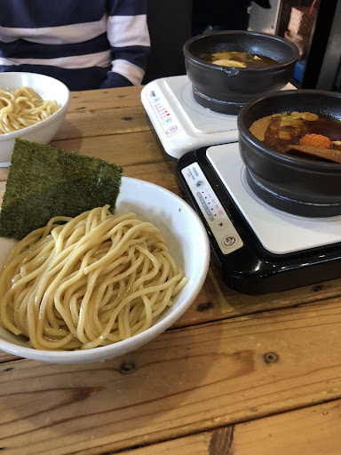 メニューの数も増えてて迷いましたが、『全部入りドロドロ超濃厚つけめん』を頂きました。席にはIHが備えられていてスープが運ばれてくると店員さんがIHの電源を入れてスープを温めてくれました。グツグツしてきたら保温にしていつでも、熱々のつけ麺を食べられるシステムに!凄い!そう言えば以前はスープが冷えない様に、わざわざ、あつ盛りをオーダーしていたのですが、もうその心配もなく、思う存分楽しめます。そうそう!メンマもこの太さだったなぁとか、チャーシューも丸じゃなくてこの形だったなぁ。なんて当時の記憶を蘇らせながら初訪問を堪能できました!