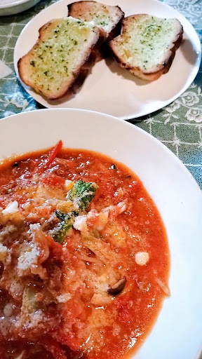 初入店😄 野菜とトマトのミートソースが目に入り注文トマトの酸味がおいし〜 ほど良い酸味がたまらない😍 パスタの量も丁度よく来て良かった😙 セットについてるサラダとパン パンが凄く美味かった😋これならピザも期待大😚 サラダはモヤシがinのせいかナムルの感じが🤣 食べ終わりコーヒー待ち中に強烈なニンニクの香りに心を奪われる🥰どーやらニンニクと唐辛子のペペロンチーノが強烈に美味しそうな香りを出してるようで次回もお店に行く事を決めました😌 デザートは追加で(バニラアイス)昔食べた感じのアイスでした🍨コーヒーは香りが良い😏クリアで飲みやすい☕️ホットコーヒーで正解かも もっと早くお邪魔してれば良かった無念😣