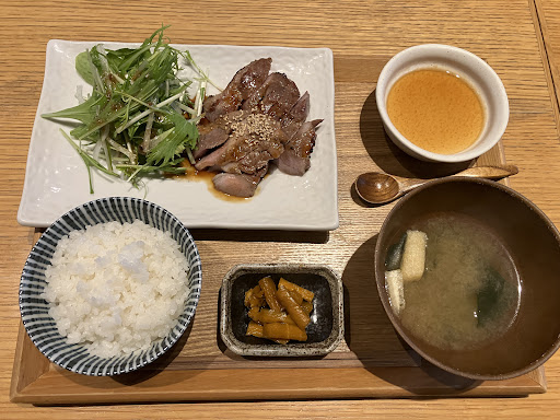 Read more知人に連れられ初訪問。パッと見た外観からは、すごく洗練されていて敷居が高そうな店構え。オープンキッチンのカウンター席とテーブル席があり、昼はランチ、夜は本格的な日本食を提供しているようだ。ランチメニューから、豚肩ロースの生姜焼き定食1,400円をチョイス。思ったよりリーズナブル。店内も落ち着いた木の温もりがある良い雰囲気。提供されると、思っていた(よく見る)生姜焼きと違う。薄い肉が焼かれて出てくるものと思っていたのに、厚みのある肉をカットした状態。しかも副菜がキャベツじゃない。肉も柔らかく、トゲトゲしい生姜焼きではない。濃い味付けで誤魔化した感じがない。うまいぞ。豆腐も漬物も、既成の味ではない。「リッツカールトンワシントンD.C.」の総料理長や、アメリカ歴代大統領の晩餐会総料理長を歴任した山本秀正シェフがプロデュースされたそうです。相鉄沿線名店プロジェクトの誘致店らしく、相鉄さん渾身の1店...