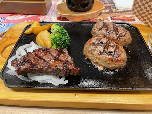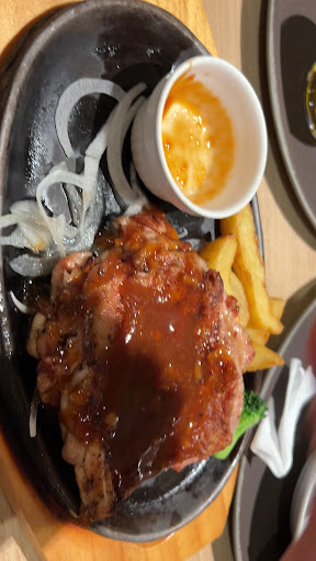 The menu focuses on sizzling teppan dishes. Beef, pork, and chicken cutlets are served on hot iron plates, generous in portion and rich in aroma. The drink selection is extensive and of excellent quality, particularly worth recommending. The salads are fresh and crisp, offering balance to the heavier mains. An all-you-can-eat curry rice option is also provided. While practical, it feels somewhat inconsistent with the overall theme.