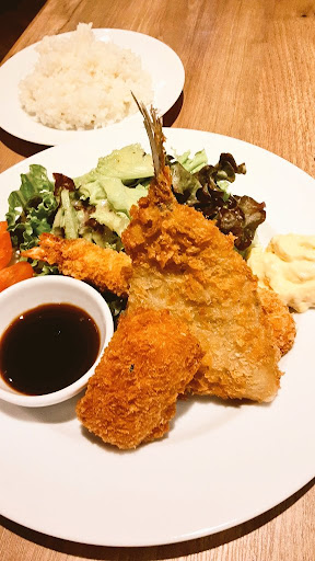 Read moreミックスフライのランチとデザート盛り合わせを頂きました。ミックスフライは、揚げたてで、とても美味しかったです。ソースが別皿で乗せられており、それもまた嬉しい心遣い。タルタルソースも手作りで美味しくて良かったです。妊娠中なので、ハンバーグの注意書きをみて生ではないのだろうけど念のためやめる。まぁ入店前からお肉が食べたい気分ではなく、ミックスフライの気分だったんですが。ミックスフライは、アジフライ、海老フライ、カニクリームコロッケでしたが油ものなのにしつこい油ではなく、軽くておいしい。油にこだわってると思いました。サラダのドレッシングも優しくて好きでした。スープバーのスープはキャベツと玉ねぎが入っていて好みの味付くでよかったです。男性の方が厨房もやりながらドリンクバーの状態やスープバーの状態を常に気にしていたのが嬉しかったです。お客さんが使うスープバーで、こぼしている方や雑にレードルを置いてしまう方がいるので、まめに目を配らせて机を拭いていたり、レードルを綺麗にレードル入れに戻していたり。清潔を保とうとされていてよかったです。そういうお店ってなかなかないんですよね。12時代でランチ真っ只中、お店に食べに行くのは2回目ですがお気遣いが安心しますね。食後はデザート盛り合わせを頼み、チョコレートブラウニーと抹茶アイスにしました。その日はチーズケーキかチョコブラウニー。抹茶アイスかバニラアイスを選べるようでした。お薬を飲みたくて、白湯を頼んだら女性の方がすぐに持ってきてくださり嬉しかったです。お気に入りのお店がで...
