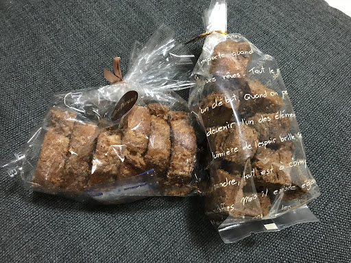 売れるおいしいパンを実践されています。きょうはお使い物にするため黒糖ラスクとココナッツラスクを買いに寄りました。