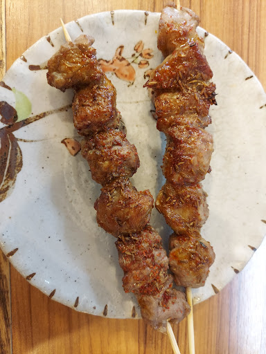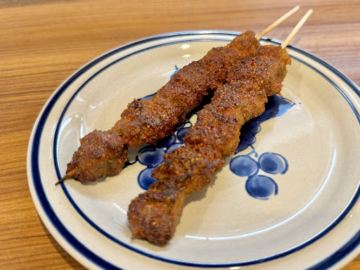 Read more新疆から来たご兄弟が切り盛りするシルクロード料理店 まさか三ツ境にこんな変わったお店が出きるとは思っていなかった。 どの肉より羊肉が好きな私としても非常に気になっていたお店である。 シシカバブ二本 羊肉とニンニクの芽ラグメンをオーダー。 シシカバブはラムを使用している。こちらはスパイシーで極めて柔らかく、臭みも一切無い。なかなか日本では上質なラム肉料理を食べられるお店がないため、近所にこんな良い店があるのは本当に嬉しい。シルクロードなだけあってスパイスは豊富ではあるがインド系というよりもネパール系の辛すぎず清涼感の強い味付けに感じた。 ラグメンはまさに中華麺とパスタの真ん中といったところ。一食ずつ店主が伸ばして一本が二本、二本が四本と包丁で切ることなく綾取りのように麺が増えてゆく。 こちらはマトン肉になり、かみごたえが出ている。その分肉自体の味も濃厚であり一緒に炒めてあるニンニク、ニンニクの芽、パプリカ、ピーマン、トマトと心地よい酸味と共に口のなかで広がる。 油はそれなりの量が含まれていると思うが、一切のくどさはなく爽やかな後味。 どの料理も日本人には馴染みが薄いが、一度鼻腔を擽られたら抗う術はない。 今度はラム肉の好...