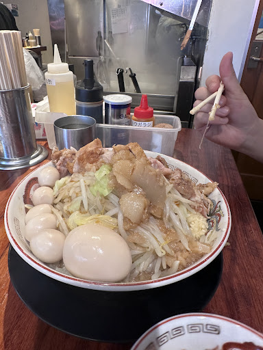 【雰囲気】 店内はカウンター席が中心で、スペース的には広くはありません。通りがかると行列がないように見えても、実は店内に数名の待ちができていることがあるので注意が必要です。ラーメン自体がボリューム満点なので、一度に大勢が長居をするというよりは、回転重視でサクッと食べていくスタイルと言えます。二郎系らしい活気がある雰囲気で、卓上の調味料やコールの仕方など、いわゆる“二郎文化”を存分に楽しめるお店です。
