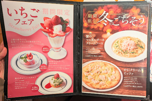 Read moreいつも戸塚店は空いている印象だったので、平日の昼だし混んでないだろうと予約しないで行ったら混んでいて30分待ちでした。 時間帯にもよると思いますが、平日の昼はマダムが利用している感じ。食べ終わっているのに喋っているからなかなか席が空きませんでした。 オーダーはQRコードでスマホから行います。 ちょっとわかりづらくて、ランチセットでかぼちゃのタルトを頼もうとしたら、私が頼んだセットでは出来ないと店員から説明がありました。仕方なく単品でかぼちゃのタルトを注文。以前に比べると、タルトが小さくなっているな~と感じます。カプリチョーザのタルトはどこのケーキ屋より美味しくて大好きなので、サイズが小さくなってしまって残念です。 パスタは渡り蟹のトマトクリームを注文しました。いつもはトマトとニンニクのパスタを食べているので、それに比べたらマイルドな美味しさでした。 イカとツナのサラダは安定の美味しさ。あまり酸っぱい物は好きではなのですが、カプリチョーザのドレッシングは酸っぱすぎず美味しくいただけます。 後日休日の夕方に予約して来店しました。 初めてソフトドリンクバーを利用したのですが、店員を呼んで注文をするスタイルでした。呼び出しボタンがないので、グラスが空になるたびに「すみませ〜ん!」と呼ぶ必要があって、ピッチャーに入ったドリンクを各自でつぎに行くスタイルならい...