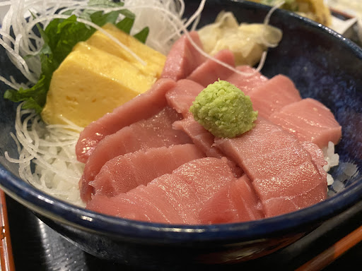The food was delicious! I got the maguro set which came with some fatty tuna, tempura, and miso soup.