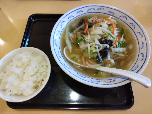 Read more近くの中華屋が休みだったので久しぶりに こちらへ。 数年前に来たときに昔と比べてだいぶ味が 落ちていたのを思い出したがとりあえず タンメンと半チャーハンのセットを注文。 店内はファミレス風。 まずはタンメン。 メニューの写真と比べて野菜は貧弱。 麺の上の野菜を口に運ぶと アレ〜 味がしないぞ? スープを飲んでみると味がしない! たぶんタレを入れ忘れてるんだな? 店員さんを呼ぶか このまま食べずに帰ってやるか 悩んでいるとテーブルの上に醤油発見! 味の無いタンメンにかけてやると 醤油タンメンの出来上がり! 普通に食べることが出来ましたが 野菜の旨みは無かった… チャーハンはまぁまぁかな? 量は普通盛りくらいあった。 でもこれで1500円は高い。 帰り際に厨房の中を見るとテレビ番組の 撮影をやっていた。 なるほどカメラが気になってタレを入れるのを忘...