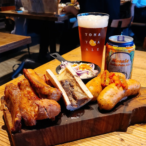 横浜西口の相鉄ムービル等がある方の少し先にあるお店で、平沼橋という駅からも行くことが出来ます。 1階にイタリアンがある比較的新しいビルの7階にある店です。ブルックリン調のこだわりの店内は開放的でおしゃれなバルのような雰囲気でした。 また、テラス席もあるので7階からの横浜の夜景を見ることも出来ます。 こちらのお店ではタップ、瓶、缶含めたクラフトビールが35種類以上あり、燻製料理や肉料理と一緒に楽しむことが出来ます。