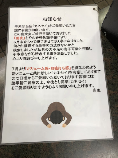 2021年6月末をもって「蕎麦」がメニューから廃止される旨の告知がされていました。単体メニューほほか、定食のセットで提供されるお蕎麦も提供されなくなるようですね。ほぼ気にはなりませんけれど。確かに効率的ではありませんからね。チャーハンセットをやめる町中華と背景は似ているのかもしれません。