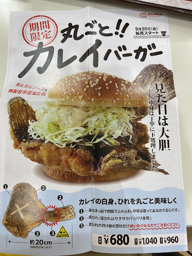Read more【2024年2月評価変更、4★→5★】 【2021年12月追記、3★→4★】 イートインコーナーは感染症対策で一人席のみになり、衛生面でも改善されていました。「丸ごと!!カレイバーガー」はタルタルソースが多すぎてやや食べ辛いものの、カレイがさっくり揚がっていてジューシーでなかなか美味しかったです。