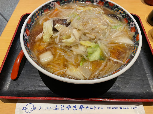 かなり昔のことイオン(マイカル時代)のフードコート内にフードコート店らしからぬ本格町中華の味だったことを覚えてます。五目あんかけラーメンが確かに美味しかった思い出です。 月日が流れ今は2階にある店舗として営業していて、昼過ぎ遅くに向かうと仕込み中ということが何回か続き、やっと午後2時前に訪問。 ものすごい久しぶりで五目あんかけラーメンを!と思いましたが、外のショーウィンドウにてサンマーメン(ふじやま亭流)が気になってしょうがありません。 入口でサンマーメン870円をオーダーして席に座ります。冷えたお水と暑いお茶の両方を出してくれます。なんか良いですね。 壁のお勧めを見たら麺類はやはり五目あんかけラーメンがトップ。他に坦々麺三倍辛いやつというのがあり、次回は是非坦々麺だなと、次の目標も定めます。 サンマーメンは期待通りの醤油甘辛で、餡が絡む細麺がGoodです。野菜もたっぷりで野菜の味も本当に美味しく仕上がってます。全体的に量も多めの大満腹。 箸袋に記載あるオムチャンが推しであることがわかります。ご飯物も人気あるようで、イオン内の侮れない中華ですね。(2021年4月)