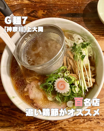 G麺7@ 神奈川県横浜市港南区上大岡西3-10-6 どうも、さぴおです ✍️追い鶏節ラーメン正油 1200円 ______________ 🍥ポイント ✅追い鶏節で初動は独特の節酸味と鶏醤油で仄かに甘さの余韻伸びるスープ! ✅卓抜した製麺技術が魅せる!のど越しシルキー麺!! ✅食べログ百名店kanagawa2024 選出店 ✅浜虎 横浜店 出身  ̄ ̄ ̄ ̄ ̄ ̄ ̄ ̄ ̄ ̄ ̄ ̄ ̄ ̄ [点数] 85点 ☆4.0 [アクセス] 『上大岡駅』(600m) [休日] 火 [注文メニュー] 追い鶏節ラーメン正油 1200円 [並び・システム] 訪問時外待ち3人(開店15分前)・食券 [食材] 鶏出汁、豚出汁、チャーシュー、鶏節、メンマ、海苔、カイワレ、ネギ、鳴門巻、中華麺 [味] 醤油