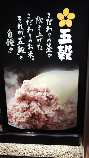 お魚が食べたくて入店。 メニューの最初の方に、看板メニューとして載っていた青空定食を注文しました。 税込1500円強。 今時のランチ価格としては、普通なのかもしれないですが、私はちょっと高いと感じました。 店名の由来になっている五穀米は、釜だきということでした。 香ばしい匂いは良かったけれど、特別に美味しい!という感動もなかったです。 おかずがたくさんついてきたのは、嬉しかったです。 鯖の梅煮や天ぷらは家で作らないので、食べる機会があってよかったです。 味は普通かな。 煮魚に入っていた梅干しが思いがけず一番おいしかったです。 肉料理を食べなかったのでなんとも言えませんが、男性にはボリューム的に物足りないかもしれません。