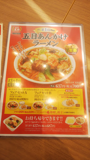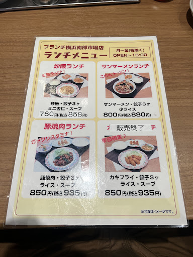 Read moreここは、ブランチ横浜南部市場にある店舗です。 東日本メニューのお店で、『カニ玉』『天津飯』『天津炒飯』のタレは「甘酢タレ」「塩タレ」「京風タレ」の三種類より選べます。 東日本メニューには上記のメニューに、チーズトッピングも可能です。 私は、塩タレチーズトッピングのセットで注文しています。 職場よりさほど遠くないのと、好みの店員さんが居るので利用回数が多くなりました。 ブランチ横浜南部市場の中でも最前列の為、中々の繁盛店でタイミングが悪いと入店に一時間近く待つ事があります。 店舗限定メニューには『サンマーメンランチ』があります。 サンマーメンは横浜ご当地麺で醤油ベースにモヤシを中心とする野菜と肉も少し、これが餡掛けとなって提供されています。 醤油ラーメンに肉野菜の餡掛けと言った方が、分かり易いかもしれません。 ホールオペレーションはムラがあり、日によっては気分を悪くする事が何回かありました。 他の方の口コミでも、特にディナータイムで多い様ですが 他の王将に比べ、料理の仕上がりが良いのでホールの評価が低くなるのが残念です。