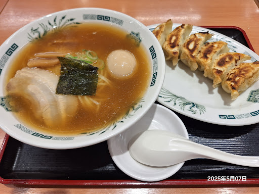 2025年05月07日(木) 【味玉中華そば】@540円(税込) 【餃子(6個)】@300円(税込) セット値引き20円で、合計820円です。 中華そばは、昔ながらの削り節・鶏ガラ・野菜で出汁を取った醤油スープで、麺は柔らかく、どこか懐かしさを感じるおいしさです。スープの表面に油膜があって、最後まであったかく食べられました。 餃子は私好みの薄皮タイプで、ひと口噛むとニンニクの風味がしっかり広がります。 初めて入った店ですが、隣の客がいきなり備え付けの紙ナプキンで大きな音をたてて鼻をかんだので気持ちが悪かったです。他にも、スマホで大声で電話している客や、店員が注文を繰り返したらキレ気味の客がいたりと、客層の印象が悪かったです。 店員さんの丁寧な接客に加えて、店内もすっきりと清潔に保たれていて、お店自...