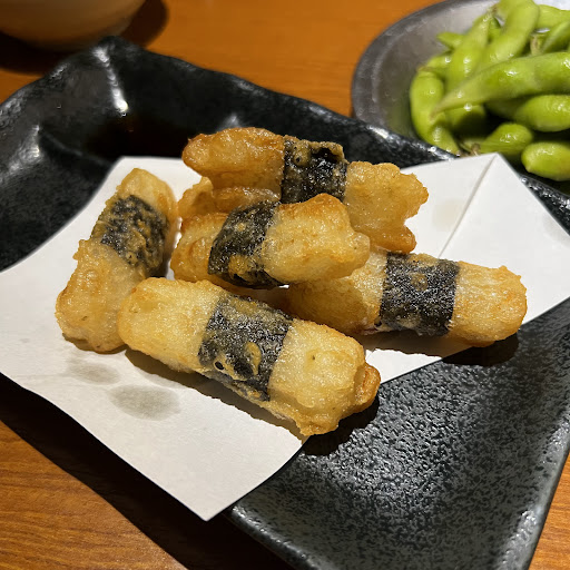 次に「のりチーズスティック揚げ」が登場。海苔の香りとチーズのまろやかな風味が見事に調和しており、外はサクサク、中はクリーミーなチーズがとろける絶品の一品でした。チーズ好きにはたまらない味で、ついつい手が伸びてしまいました。