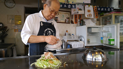 Il miglior ristorante di sempre ed è di fronte al dormitorio Shimoda di Keio University. Il proprietario è un signore di 89 anni nel 2021 ma si comporta come una persona molto più giovane. Parla qualche parola di inglese oppure puoi esercitare il tue capacità di giapponese. Il ristorante è praticamente una stanza della sua casa. Una volta entrati comincia l'esperienza: se si vuole si può cucinare qualche cosa con lui altrimenti no. Una volta finito di mangiare ti chiederà se può fare una foto da inserire nell'album e poi potrai scrivermi dei commenti. L' Okonomiyaki Hiroshima style è il migliore che abbia mai mangiato, ci sono molte scelte e puoi mettere anche dei noodles...
