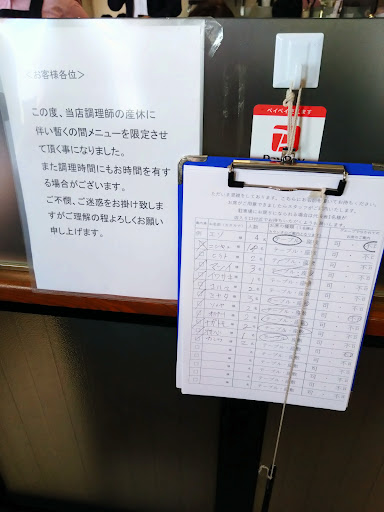お昼12時45分に到着して、4組待ちでした。 店内に入って直ぐに、順番待ちの名前を書く バインダーが用意されています。