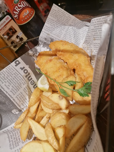 Read moreCalled in with jetlag to the British bar... Fish was tastey with a lovely crispy batter and the chips were nice too. Had the 2 pieces of fish. Served in a basket with a handle and greaseproof as newspaper for authentic image of traditional F&C Portions were adequate not the size you'd get from a UK Chippy but can't fault the food.... 1st time I've eaten fish and chips with...