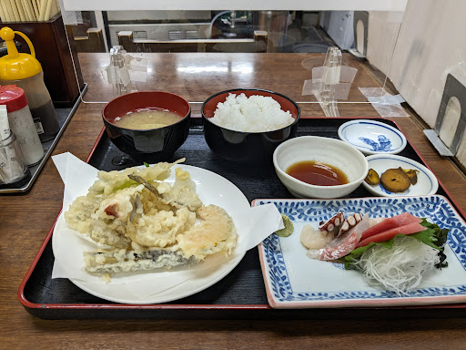 Good, honest food at a fantastic price. Service as efficient as you could ask for! 2000 yen got me a sashimi selection, a generous amount of well cooked tenpura, good rice and soup, and a bottle of beer. The ramen shop opposite is also great, but if you don't fancy noodles, this place has...