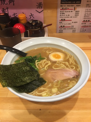 駅前を通ると目に入ったのが「昔ながらの昭和の味」 思わず足が止まり、店舗外のメニュー写真を見ますと 「横浜で2番目に安い店」 その真偽は別として、一歩下がった控えめな主張が気に入ってお店の中に入りました。 券売機を見ますと「魚介とんこつラーメン」もメニューにあり、昔ながらの味、醤油ラーメンと同じ550円、少々迷いましたが、ここは魚介とんこつラーメンを選択しました。 そしてレンゲでスープから口に入れると他店とは異なる魚介とんこつの味です。 これは決して悪い意味ではなく、逆に私としてはこちらの方が好み! 詳しく解説しますと、煮干しがメインの魚介スープと豚骨のブレンド、その割合比率なのですが、魚介スープの割合がかなり多く感じられるのです。 いや、ひょっとすると魚介の出汁がかなり濃厚なのかもしれません。 恐らくは出汁に半端ない煮干しの量を使っているのでは? あっさりとしながらも濃厚煮干し!!(笑)と前面に押し出してくる強烈なインパクトがあります。 普通なら1〜2回ほどスープを飲むと麺に箸がいくのですが、レンゲで飲むスープの動作が自分でもなかなか止まらない! 当たりのラーメンを食べた私のいつものパターンです。 麺は太麺です。 これで550円はコス...