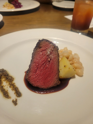 The menu raises expectations with fancy words, but delivers far too little - the soup was good! I wish I had a bit more bread. The fish was beautifully cooked and the beef was brilliant although both plates came very late.