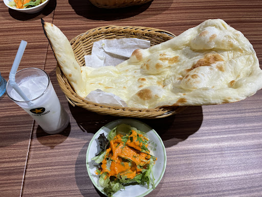 9月20日日曜日ランチに訪問しました。 1時前でしたが、店内は8割方席が埋まっていました。 ランチセットはA~Hとお子様セットの9種類あります。 料金も750円から1200円までと良心的価格です。 Hセットは最初からチーズナンが付いて、カレーが2種類とサラダ、マライティッカ、ドリンクが付いて1080円です。 ⚫チーズナンはチーズがナンの中にぎっしり入っており、素で食べても、カレーと一緒に食べても美味しいです。