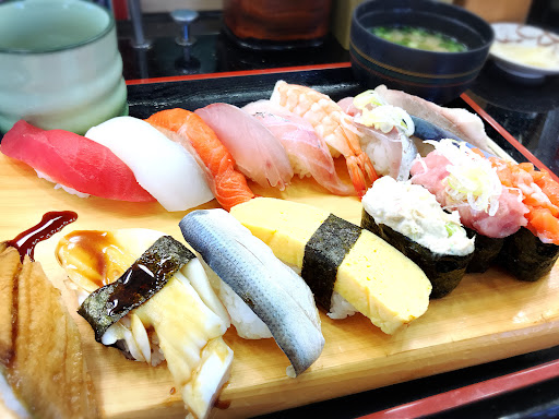 Pretty common sushi store and nothing special. The sushi are all handmade, although it is called 回転寿司 the sushi track is not rotating and working. Personal recommend: ★ ★ ★ Family-friendly: ★ ★ ★ Date for couples: ★ ★ ★ Parking lot: ◯ Services/meals/products/design: ★ ★ ★ Period for stay: 1.5 hours Charge: 2 adults ~4500 yen Baby room/accessible toilet:...