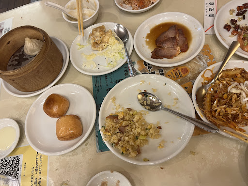Read more平日のランチタイムを外してこつこつ貯めた食べログのポイントを使わせていただきました。 いろいろ検索して元祖シウマイと北京ダックまで食べ放題の順海閣さんに決定! 食べたい物をリストアップして予習ばっちりで訪問です。 ポイント使わせていただくの申し訳なかったけど温かくお迎えくださりありがとうございました。 飲み物は別と言う事でスーパードライ(中瓶)とウーロン茶をお願いしたところ、お得なドリンクバーもあると教えていただきました。 紙に書いての注文、食べ残し別料金なのでちょっとずつオーダーしました。 すぐに提供されるのでもっと分けてオーダーでもよかったかな。 オーダーしてすぐに海老のチリソースが到着。 海老と少量の雲呑の皮のみカサ増しなし、熱々で甘くてピリ辛でした。 続いて八角がほんのり香るカリカリチャーシュー、皮がカリッとしていて脂が甘いです。 帆立貝柱のXO醤炒めは新鮮な帆立をレア気味にXO醤で炒めてあります。 XO醤は自家製なのかな? 具だくさんでXO醤だけで白飯食べられるくらい美味しかったです。 お待ちかねの北京ダックはしっとり薄い薄餅にきっちり皮だけの本格的な北京ダック。 これが食べ放題でいただけるなんて夢のようです。 元祖順海シウマイ、ひと口頬張って唸りました! 今では当たり前のように横浜スタンダードな貝柱入りシウマイはシウマイ爺として名を残された中国広東省出身の呉 遇孫さん(順海閣創業者呉...