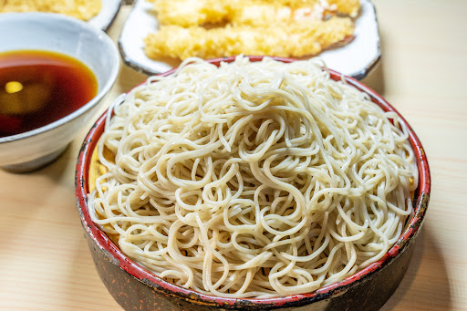 What is Tsuketen? Tsuketen is Soba Noodle with Soup, which you can order either Hot or Cold Soup. It's served with Massive Shrimp Tempura.