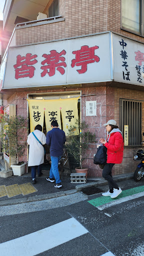 日曜のお昼に妻と2人で伺いました。店内はカウンター6席、4人掛けテーブル席 x 3(さらに奥に個室があるようです,広さは不明)で、訪問時ちょうどテーブル席が1つ空いてるのみで他は埋まってました。2人でしたがテーブル席に案内していただきました。 私は人気No.1と言われる皆楽みそラーメン + ご飯のセットと生ビール、妻は天津丼と餃子を注文。 すぐに生ビールが到着。おつまみに枝豆が付いてきました。 ほどなくして皆楽みそラーメンとライスが到着、付け合わせにお新香と高菜がついてました。 この皆楽みそラーメン、とてもおいしい!!さすがに店名を冠するだけのことはあります。 スープはコクがあり、塩味も程よし。肉野菜炒めが乗っており、またバターもついてます。このバターと肉野菜炒めのエキスと味噌 +...