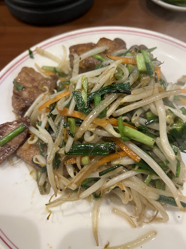 【レバニラ炒め】 もやしとニラだけを食べた時点で大正解の旨さ。 レバーはレバ好き向けの、しっかりレバレバしてる味で片栗粉のついた丁寧な仕込み、肉も大きめの歯応えのある豚レバー。 味は「塩レバニラ炒め」といったほうが分かりやすいか、黒っぽい醤油汁が全く皿に残らないものでした。