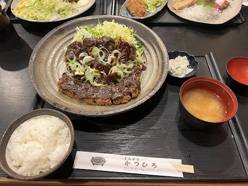 Read more口コミで評価が高く、近所である事もあり、一度はと思い来店。 駐車場は店舗正面の路地を入ると有り、4~5台のスペースがありました。 ※第2駐車場有り 私は常連さんに人気!とある『ネギ味噌ソースのロースカツ定食』に麦飯を注文。 運ばれてきた膳には、白米、赤だし、カツ。 ん?白米?。。。まぁ、いいか。 赤だしには具に白菜のみ。 白菜をいれるなら、もっと大きめに切り、甘味をださないと赤だしが塩辛くてきつい。 ネギ味噌ソースのカツは、途中までは美味しくいただけたが、後半になるとカツの脂切りがイマイチな為か、せっかくのソースが逆に重たく、キャベツと一緒に流し込む作業になってしまったのが残念。 ご飯も、おかわりする事はなかった。 妻は『ヒレと野菜のカツ定食』に黒米を。 黒米は中々もっちりしていて、美味しくいただけた。 ※赤だしは言わずもがな。 ヒレは自家製ソースをかけて。 中々美味しいが、ソースが勝ちすぎてヒレが噛むうちにソースの味のみになった。 ソースなしで食べたが、此方が良かった。 ※自家製ソースの酸味が強い 野菜では、里芋とブロッコリーの揚げ方が丁度よく、里芋はほっこりと、脂切れもよく美味しかった。ブロッコリーもふわっと軽い感じで美味しくいただけた。 娘は『お子さまセット』を。 『エビアレルギーなのでエビを何でもいいので、代わりのものに変えれますか?』と聞くと『コストぎりぎりでやってて、サービスメニューだから無理だよ。アイスやドリンクバーもつけてるからね。かえれないよ』と回答。 色んな店に行ったが、ここまで言われたのは初めて。 別にあれに変えろとか、これにしてとか無理は言ってないし、そもそも『エビ』を野菜でも何でもいいので変えれますか?です。 無理なら『すいません、変えれないんです』とだけ言えばいい。 写真には立派なエビフライがのってます。 仮にそれをブロッコリー1個に代えるのもコストオーバーなのでしょうか? しかも、まだ小さい娘も聞いてるのに、そんなコストやらサービスメニューだからとか言う器が小さい。 他店でもエビフライがのってる時は多々有りましたが、お子さまセットが食べたいが、エビだけアレルギーで、と言うと『別な物に変えましょうか?』と逆に聞いてくれます。 結局、私はエビ抜きで構いませんので、お子さまセットを、と注文しました。 店員の女性の方も、店主の答えに一瞬『え?』と言う表情をしていました。 次回は友人や両親も一緒にと思い期待して来店しましたが、残念です...