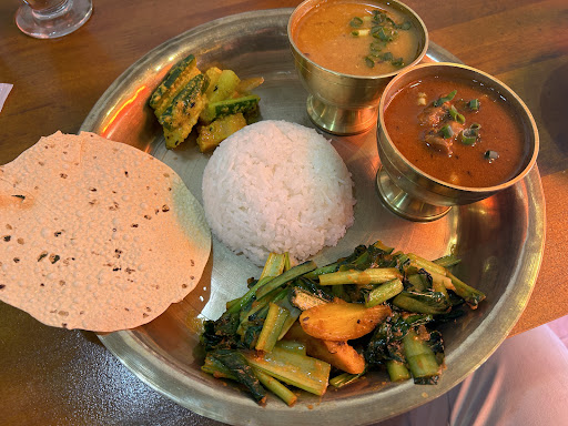Read more★★★ 以前からあったインド料理屋さんが数年前に新しくなって、でもあまり以前のお店の雰囲気が好みでは無かったのでコチラにも足が向かなかったのですが、今回ふと思いついて来てみました。 店内の雰囲気は以前とは変わって明るくシンプルになって、好印象。カレー以外の料理もかなり増えた感じで、単にカレーを食べに来る以外にも、エスニック料理でビールを楽しむ、という様な使い方もできそうで、これならもっと早く来てみれば良かった、と思い直しました。 ほぼ全ての料理について辛さを指定することができ、ツレが過剰に辛いモノは好まないので「3」を選びましたが、辛すぎず、でもしっかりスパイスの風味が感じられて、さらに野菜の食感や旨味も感じられてどれも美味しくいただきました。 注意点は「盛り」。ビリヤニは大盛り、ナンは巨大(まぁ、チェーン系ではないインド料理屋さんのナンはどこも巨大ですが)。いろいろ食べたい人は、特にナンは様子を見ながら...