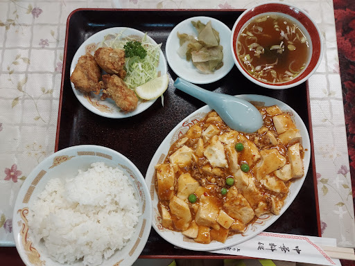 麻婆豆腐は最近のトレンド麻辣に左右されることなく、昔ながらの甘口。だがそれが良い。豆腐は苦味や臭みの無い舌触りの良い絹。ご家庭で作るときは木綿のほうが楽だが、絹を使えるのは調理時にかき混ぜる回数が少なくて済むプロの技だなと思う。(素人の自分が絹で作るとぼろっぼろの麻婆豆腐になるゆえ) 甘み→豆板醤の辛味→山椒のシビレと三段階来る味。でも最後のシビレが強くないのでいくらでも食べられる。最近は節操のない麻辣の使い方をする店が多くがっかりさせられるが、ここはギリギリシビレを持ち越さない。 唐揚げはムチッとした胸肉。麻婆豆腐と相性が良い。 スープは取り立てて抜群にうまい!というわけではないがさっぱりとしており、程よい主張。 ここのお店の感想としては、押し付けのない「日本人が中華料理食べたいのってこれだよね?」という感じの料理が出てくる。 気負わず食べられる、基本のできた中華...