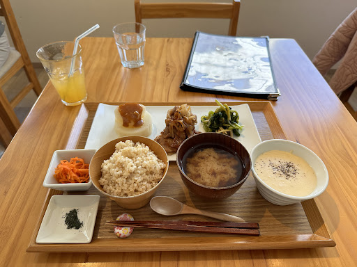 シンプルで優しい味つけなので人によっては物足りないと感じるかもしれませんが、化学調味料や砂糖で味付けしてしまってはせっかくの無農薬のお野菜の味が損なわれてしまうので、これくらいが良い感じです。私としてはもっと薄味でも良い気もしましたが。そしてお米は無農薬無肥料の自然栽培!素晴らしいですね。料理に白砂糖はもちろん使っていません。 ただ、玄米ご飯にはちょびっと緑茶の塩?が付いてくるのですが、これはせっかくならごま塩のような形で食べたかったのでもう少し量があってもいいかな~っと。