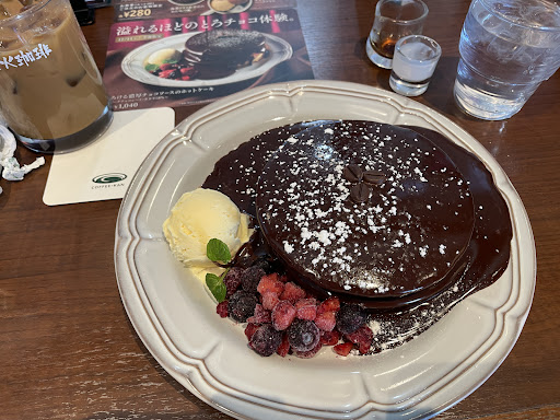 Read more昼食に利用させていただいています。 でもこれが食べたくて! 一見、とても甘そうにみえますが、そんなにいうほどでもなく、冷凍のフルーツと食べると美味しいです。ホットケーキが美味しく、チョコとアイスとがよくあってます。 少しお時間かかりますがと言われましたが、そんなに感じませんでした。 普通のホットケーキも美味しいかも! コーヒーは、ストレートで飲んだ方が良かったかな。 ランチもおいしいですよ。ナポリタン!美味しいです。明太パスタは、バターが上にのっていて、パスタに和えながらいただきます。 パスタ美味しいので新しいメニューが増えたらいいなと思います。大変だとは思いますが、、。