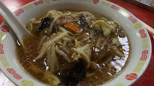 今現在、食事と言える物は提供されないと思います。平日昼時に入店。ノーマスクの老人2人が客席でテレビ見ながら食事中の様子。 営業中の昼時にも関わらず、他に客は無し。 とりあえず永年サービス価格のサンマー麺を注文し、足を引きずり厨房へ歩く店主を見送り、咳こむ店員に驚愕しながら店内を見回し、髪の毛の伸びる人形を見ながら待つこと15分程して運ばれた物は、見た目明らかに以前の写真にあった物とは別物で、とろみ全く無い野菜炒めのような物が、ふやけて伸びた麺の上に乗った感じ。 超薄味のスープに入った麺を一口、味がしない。野菜といってもスーパーの野菜炒めセットの方がまともに思えるほど、種類もバラバラ切り方も酷い。 野菜にも味は殆ど無く、生焼けな感じ。 テーブル上には調味料は何も無く、サンマー麺と一緒に運ばれた白コショウのみ。そのコショウ振るも、なかなか出ない。 麺だけはなんとか食べれたものの、途中で妙な食感の物があったので怖くなって食べるのを中断し、支払い済ませ退店。