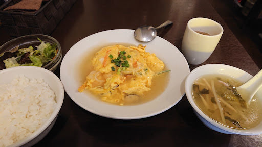 ◆えび玉 750円 2021.3.23火 カニ玉のえび版。プリプリのえびがたくさん入っていて、あんがトロッとしていて、美味しかった。 厨房から出てきたお店の人が「いつもありがとうございます。」と声をかけてくれた。今回が初めてなのに気持ちが良かった。 水と熱いお茶のどちらが良いかとか、えび玉をご飯の上にかけることもできるけどとか、こころ配りある接客が素晴らしかった。ここは中華街か? ちょと甘いかもしれないが、星四つ。