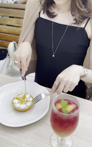 ぶどうのタルトめちゃめちゃ美味しかったです。。 洋梨のほうじ茶タルトは上のクリーム部分に ほんのりほうじ茶を感じる程度。 ぶどうのソーダみたいなやつはおすすめしません。 見た目につられて頼んでは見たものの、見事に無味! 炭酸水にほんのりぶどうのシロップの風味がするような…って感じでとにかく味が薄いです。