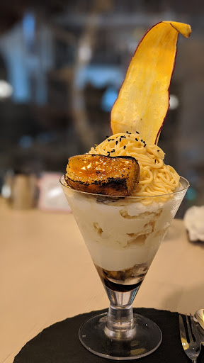 Open into the evening, found on the 2nd floor, is this quaint cafe now named "Le Parfait." The service was very attentive and welcomed us. There is a minimum 1 item per each person requirement, but that is not an issue as this place is delicious. Their expertise in parfait and taste was wonderful, and there are options for those who didn't want sweets. We ordered a fig parfait, but didn't expect that prosciutto that was topped would create a wonderful contrast. As non-alcoholic drinker, I appreciate that they had options. Lastly, the owner and the staff were super...
