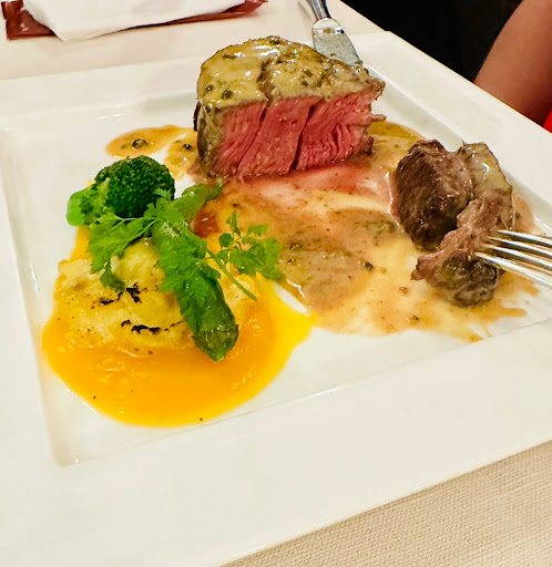 Absolutely loved our dining experience at Leone Marciano. First, the restaurant is beautiful! The wine list was decent. The food was amazing! There are course or a la carte options and we chose to order a la carte: calamari, two pastas (which the kitchen split for us), a meat dish each and desserts. Everything was exceptional! We were particularly impressed with the steak filet which was cooked perfectly - medium rare (as requested). The steak was lean - which is not as common in Japan and the peppercorn sauce was excellent! It was a generous size - as was my pork saltimbocca. The servers were very attentive and accommodating for our limited Japanese language skills. Leone Marciano will certainly be on our date night rotation! ...