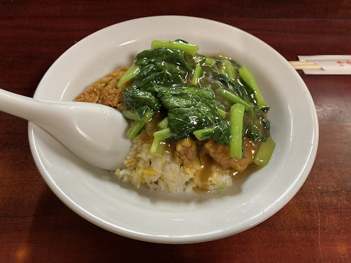 What I had today is pork chops fried rices. Pork chops’s batter is curry flavored that is actually not common in Taiwan or China, but I love it. Fried rice tastes also nice, every single piece rice is well fried!