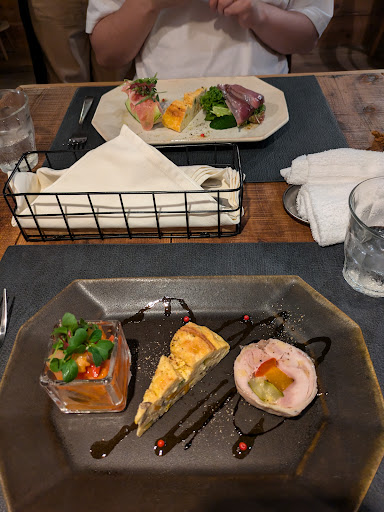 Read more初めてランチで利用しました。 道路から見えるピンクの壁に沿って(中のキッチンを見ながら)奥に進むと引き戸のドアがありました。 オープン11時半少し前でしたが、すぐ席に案内されました。 店内は10席です。ご夫婦二人ならちょうどよい広さなのでしょう。 ランチはABCの3種類で、奥様が丁寧に説明してくれました。 スープ、前菜、パスタかリゾット、魚か肉、デザートのCコースを選びました。スープは焼き茄子のポタージュ、前菜は野菜たっぷりの上にのったローストビーフやエスカベッシュなど3種類でした。パスタはこの日は3種類あり、パスタだけでなくリゾットもあると説明され、私はリゾットを選びました。 魚は鱈、肉は鶏で、周りに彩りよくいろいろな温野菜が飾られていました。リゾットまでで結構お腹が満たされ、これで大満腹になりました。 紅茶かコーヒーとバニラアイス、シャインマスカットを綺麗に並べたゼリーで終わりになりました。 食べ始めたら、いつのまにか満席になり、帰る客があってもすぐ次の客で常に満席状態でした。 グラスの赤ワインも美味しく、野菜をたくさん食べられるコースで、大満足の2...