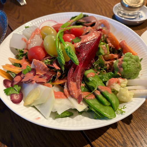 鎌倉野菜をふんだんに使ったサラダは彩り豊かで圧巻🥗 お野菜盛り盛りで嬉しすぎる😍 めっちゃ美味しいのでサラダはぜひ注文して! お肉系の前菜も天才すぎる🫶 ワインが進んじゃいますね🥂