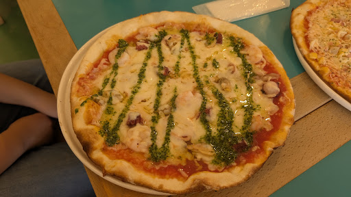 ピザは窯焼きと謳っていたので、 モチモチ系の生地を想像していたが、 クリスピーみたいな薄い生地でした。 娘たちは、おいしいと言って食べていたので、 良かったです。