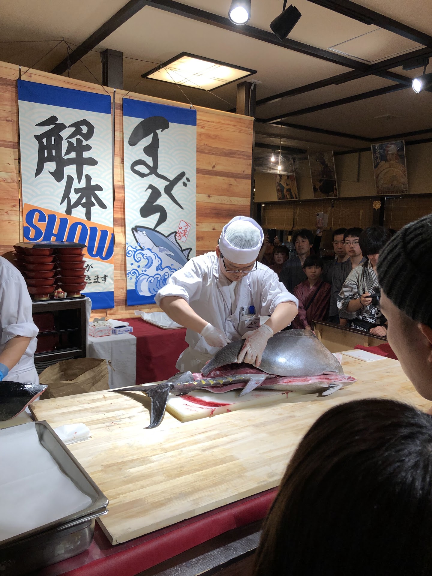 Once you've waited in-line to get a wristband you take off your shoes and put them in a bag. Then you go and pick a yukata (kind of kimono dress thing) and take it into the lockers rooms.