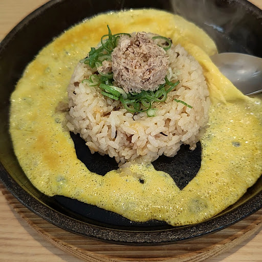丸源のチャーハンは チャーハンが入った熱々の鉄板に スタッフさんが目の前で卵をジャーッと流して 卵が固まらないうちにお客さんが 卵とチャーハンを混ぜて完成させるんです。 これ結構楽しい♪ チャーハンが着いた途端に 卵をいきなり流されるので 動画を撮りたい方は 撮影準備をしておいたほうが いいと思います。
